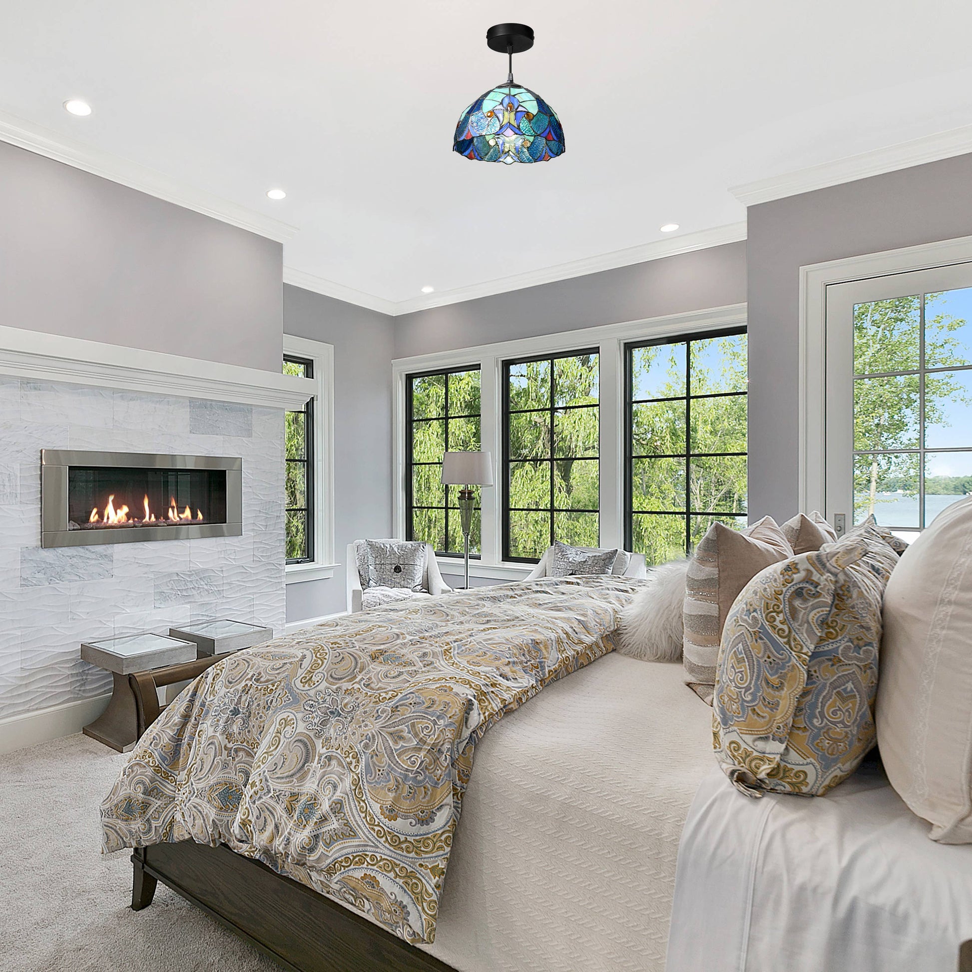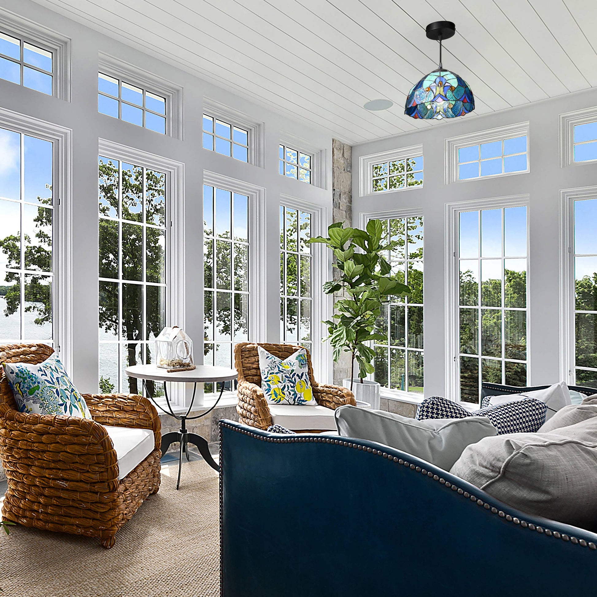 10.25"W Halston Traditional Blue Dome stained glass Shade Pendant