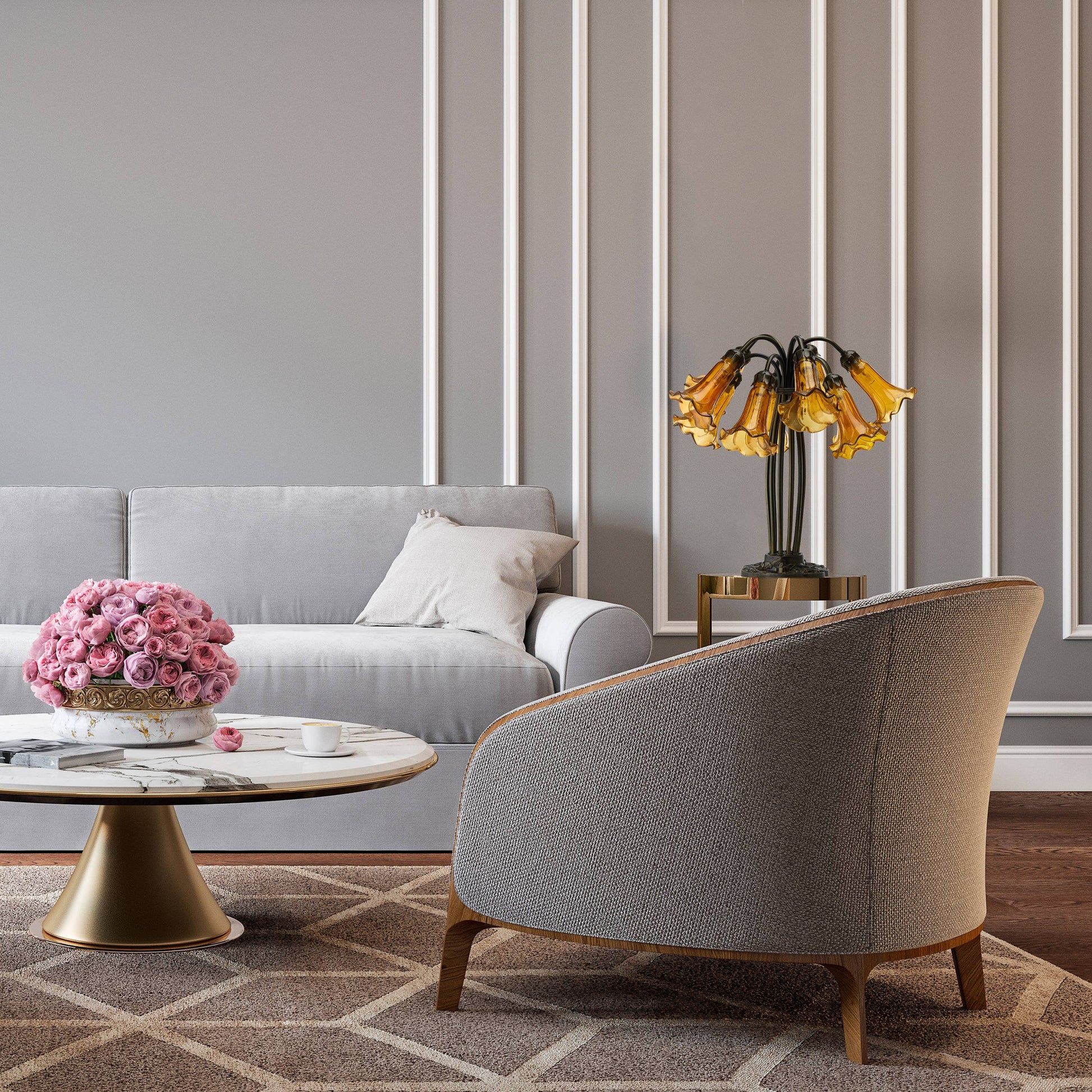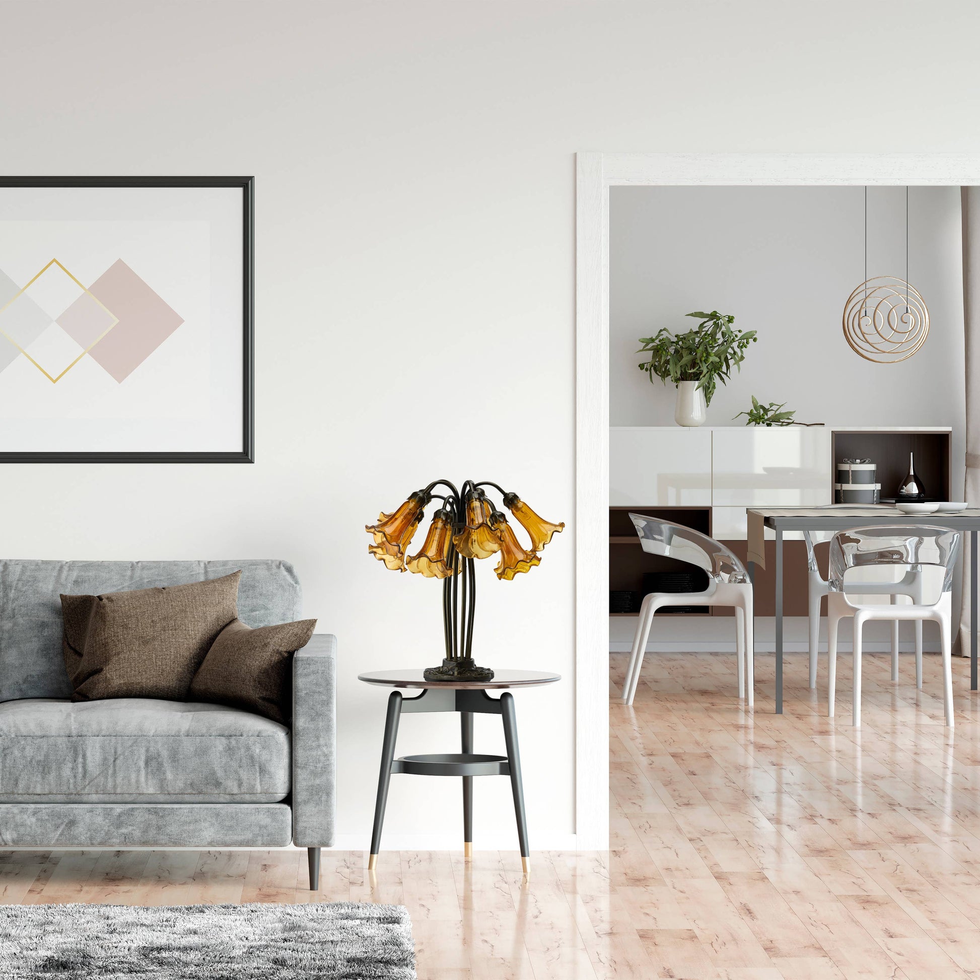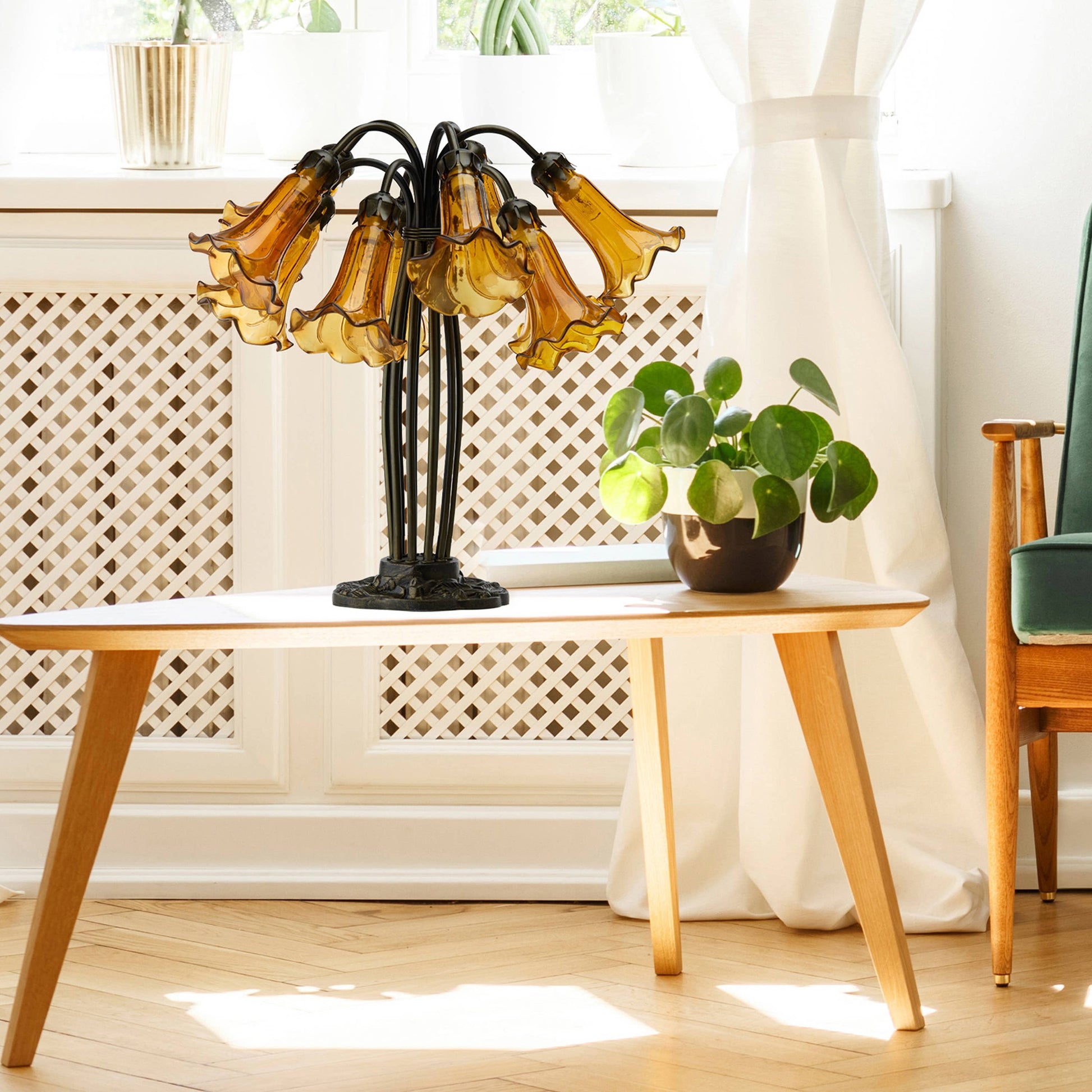 21"H Lily 10 Light Amber Shade Table Lamp