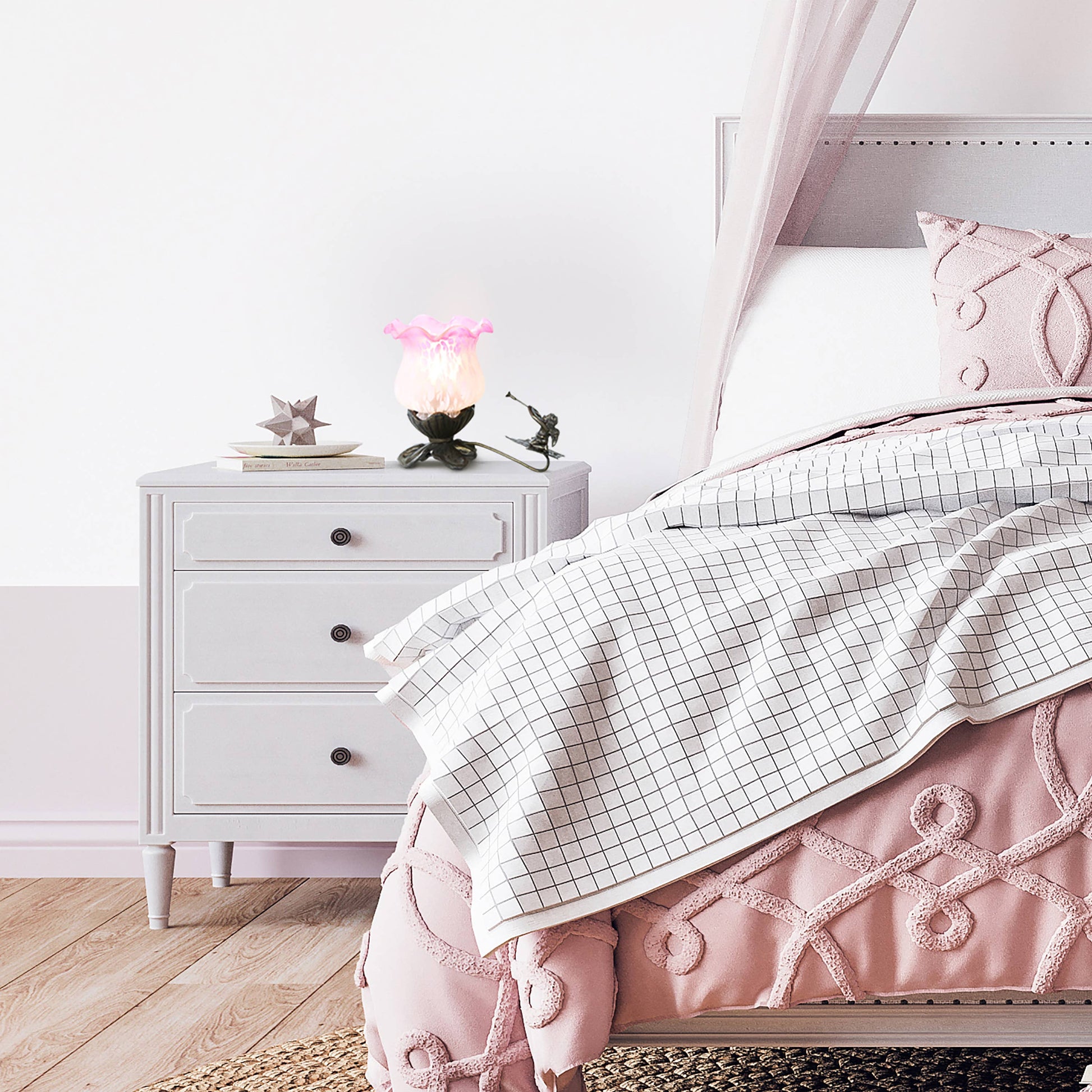 6"H Handpainted Frosted Glass Cherub Flower Accent Lamp