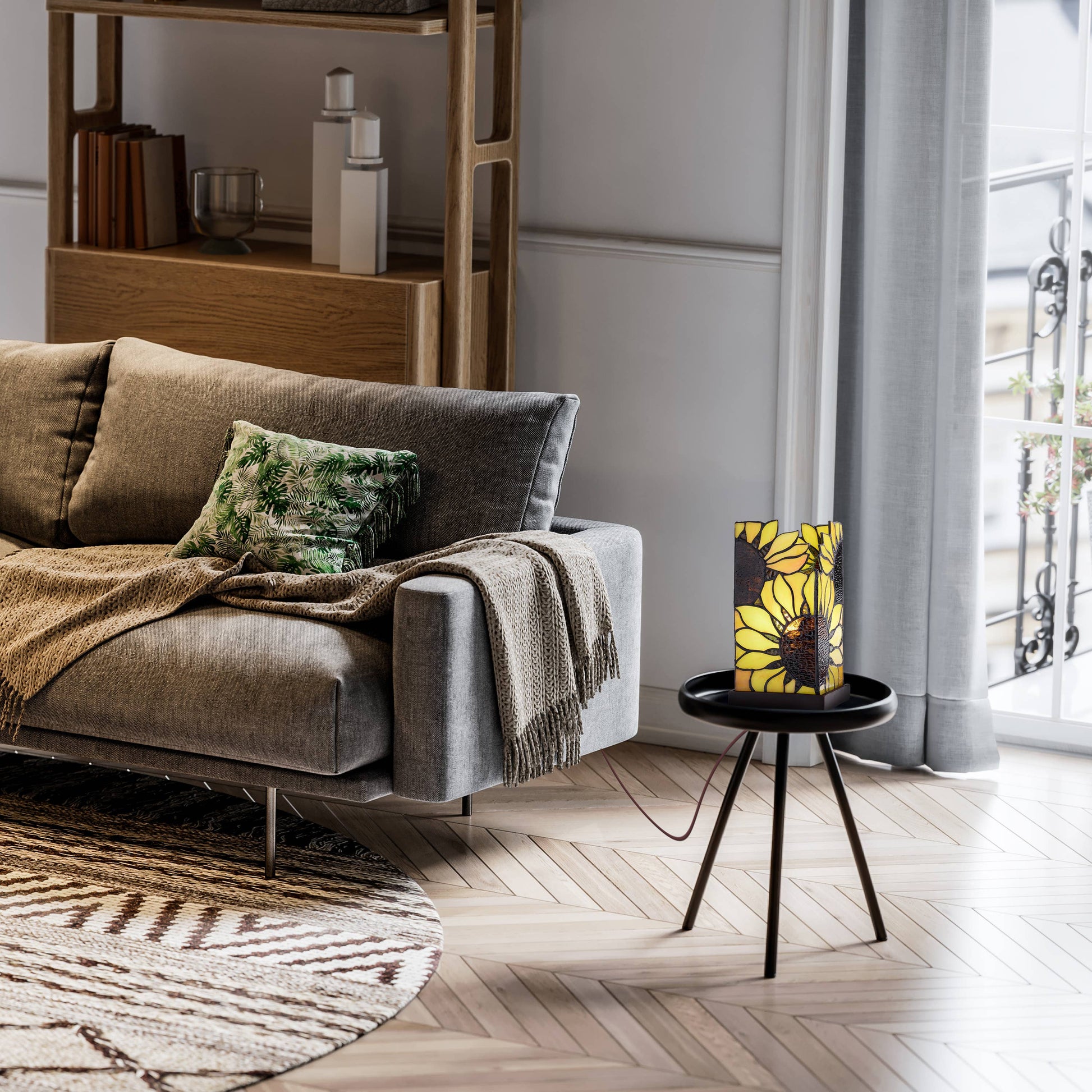 9.75"H Sunflower Rectangle Shade Hurricane stained glass Accent Lamp