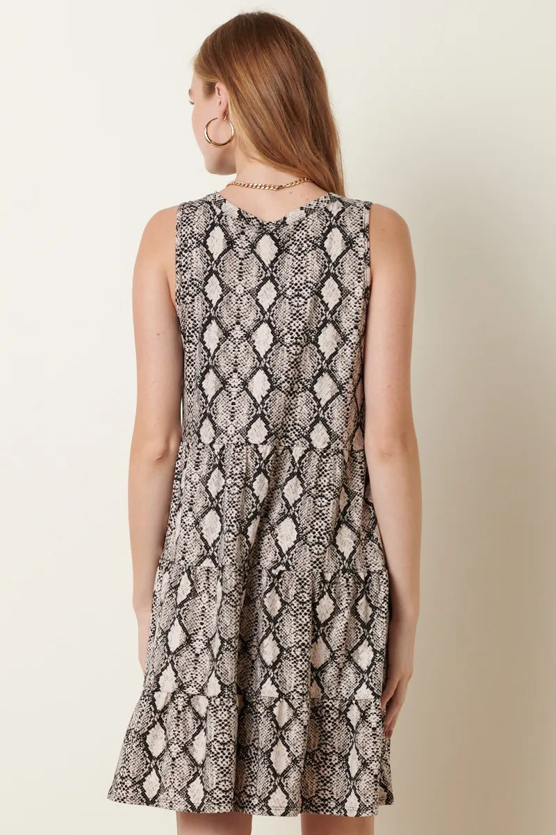 The Snake Print Ruffle Detail Tank Dress is a chic and edgy piece that combines a trendy snake print with feminine ruffle detailing. The snake print adds a bold and fashion-forward element to the dress, while the ruffle detail brings a touch of charm and sophistication. This tank dress is perfect for making a statement at summer events or outings, offering a stylish and unique look. Pair it with sandals or heels for a fashionable ensemble that showcases your individual style with a hint of attitude.