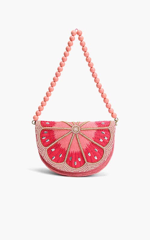 America & Beyond Cresent Pink Lemon Embellished Shoulder Bag
