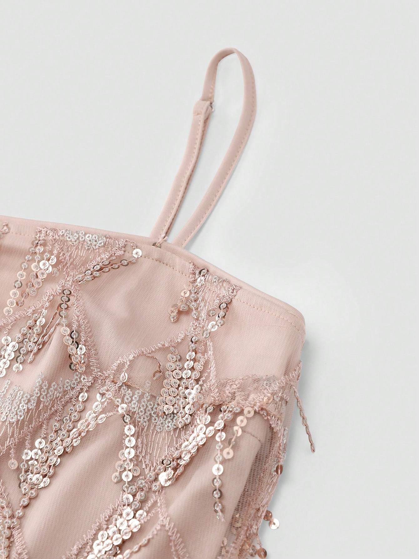 Women's Glitter Spaghetti Strap Formal Evening Party Dress